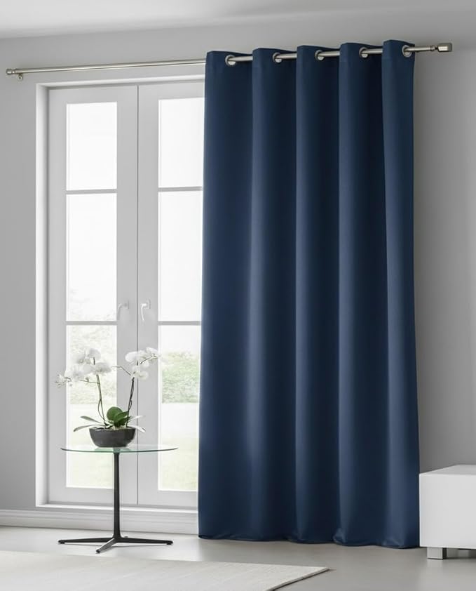 Window Dark Blue Polyester Curtains & Sheers Window 5 Feet (2 Pc)
