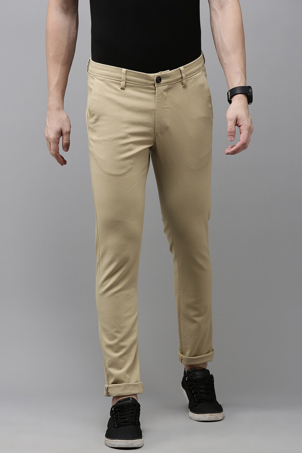 Men's Khaki Beige Extended-Waistband Straight Trousers