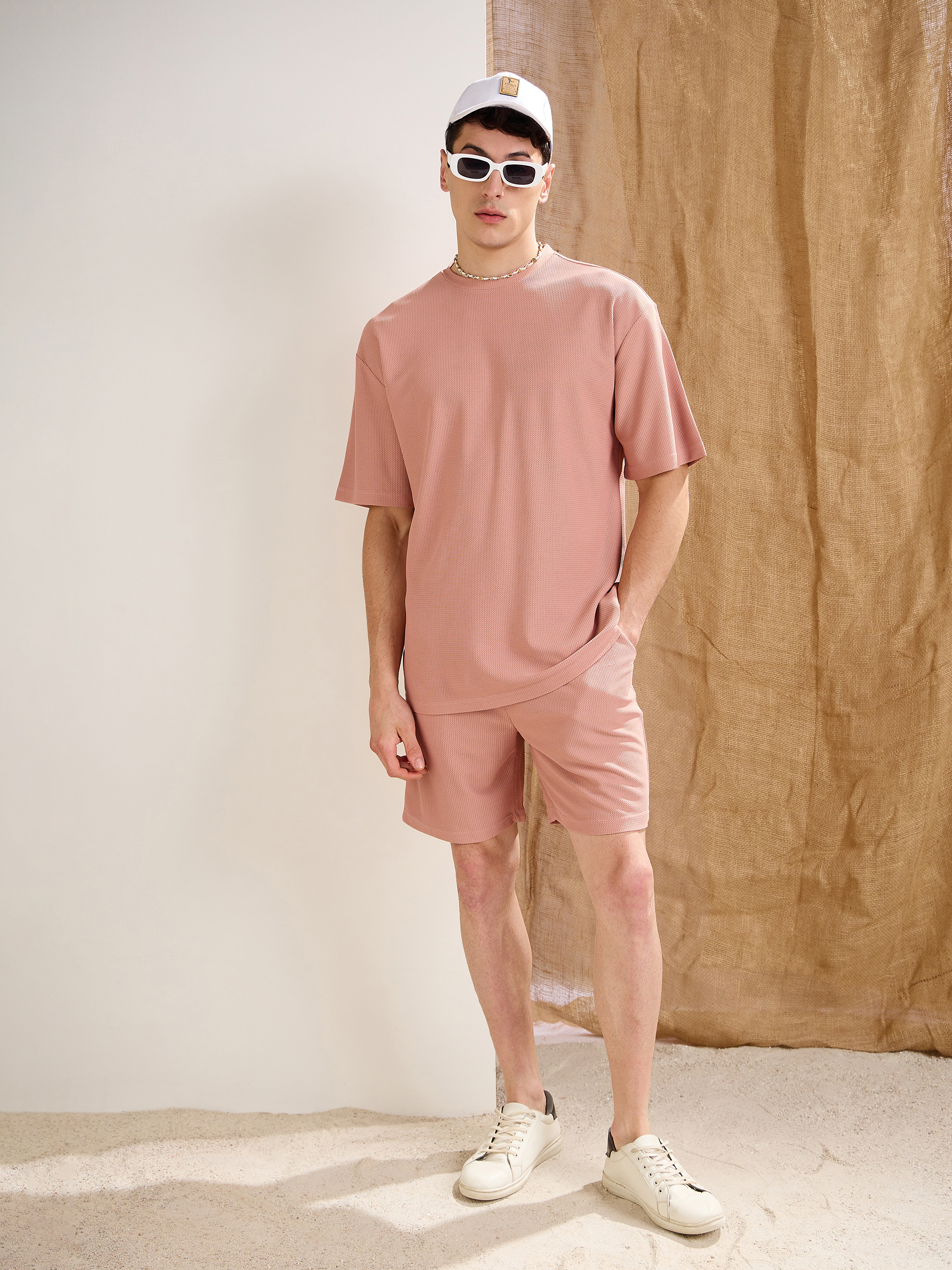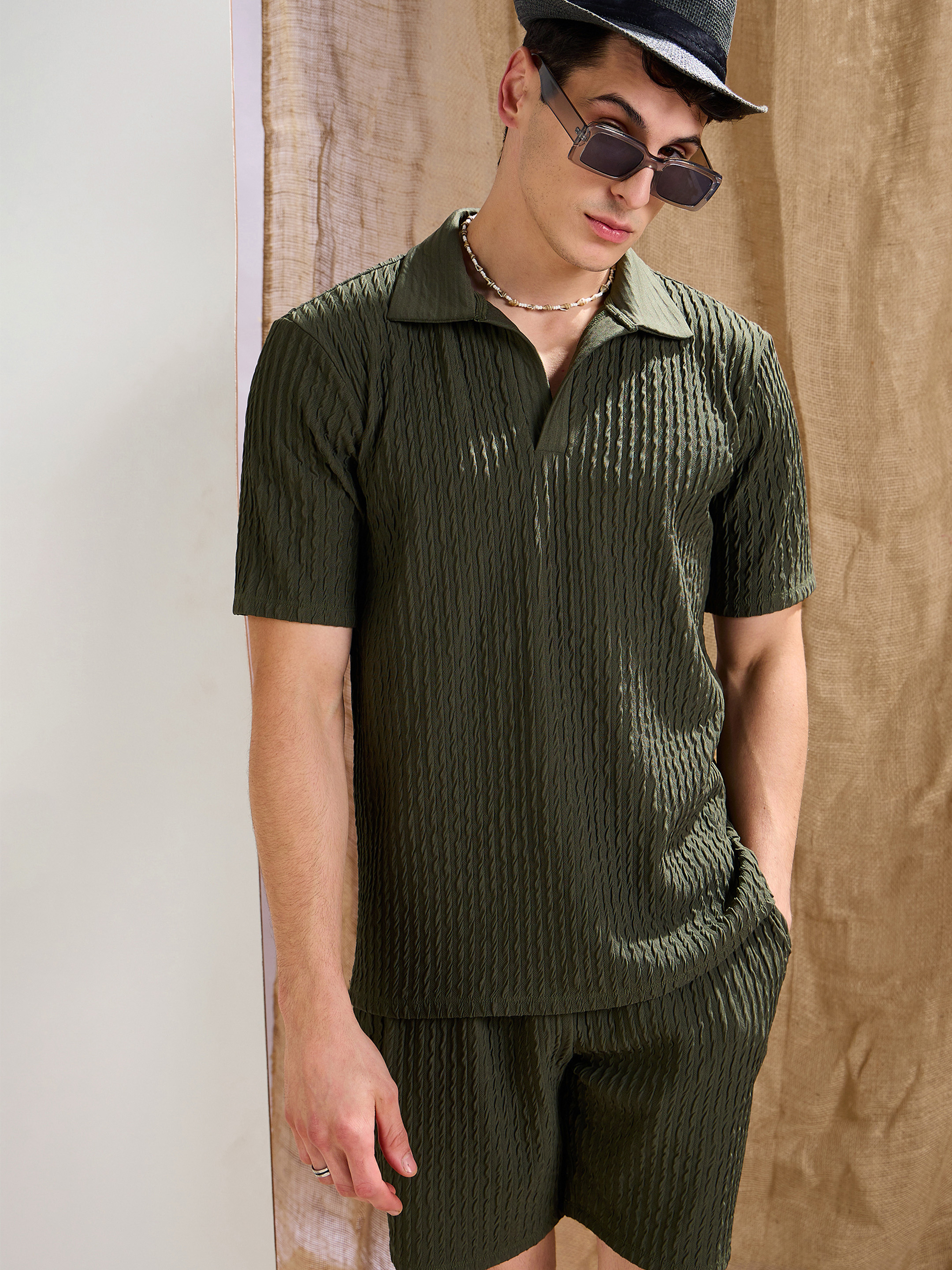 Olive Textured Relax Fit Polo T-Shirt With Shorts