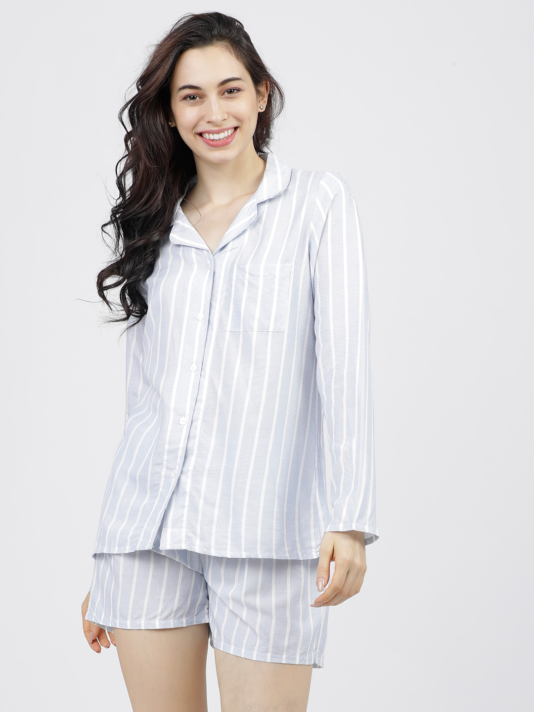 Tokyo Talkies Women Blue & White Striped Night suit