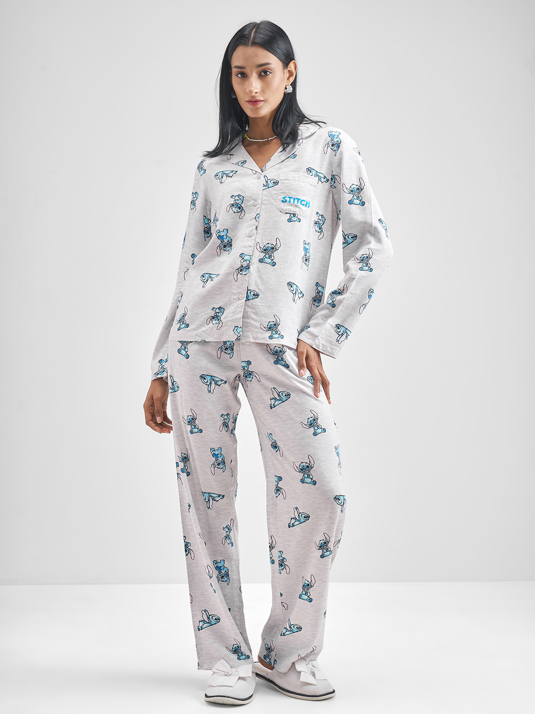 Tokyo Talkies Cartoon Characters Printed Lapel Collar Shirt With Pyjamas Night Suits